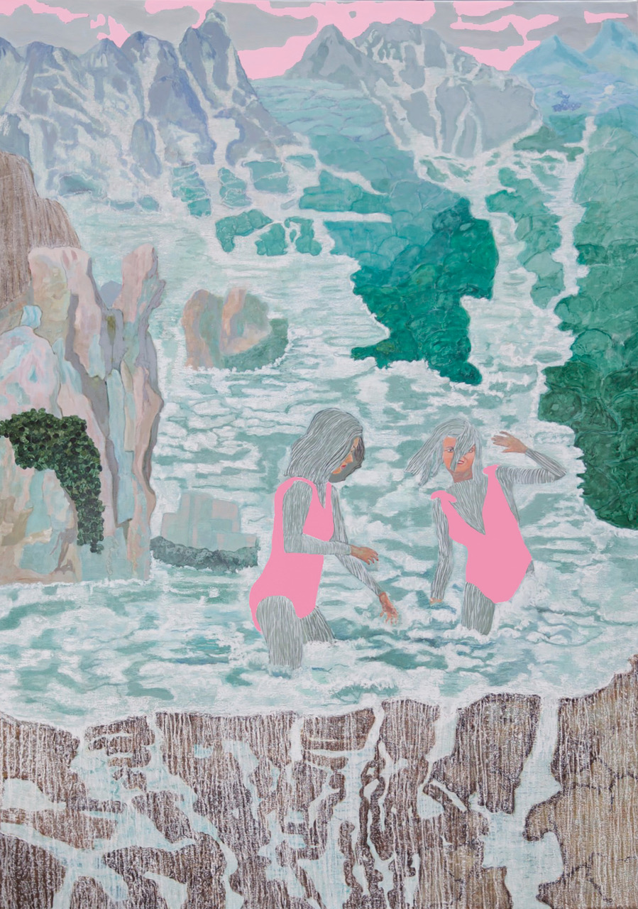 Des paysages très colorés à la végétation luxuriante, nature convulsive, parfois en ébullition, parfois assoupie, ou bien atmosphère froide, miroir d’un monde possible sans êtres humains, accidents de l’évolution, grands mouvements terrestres.