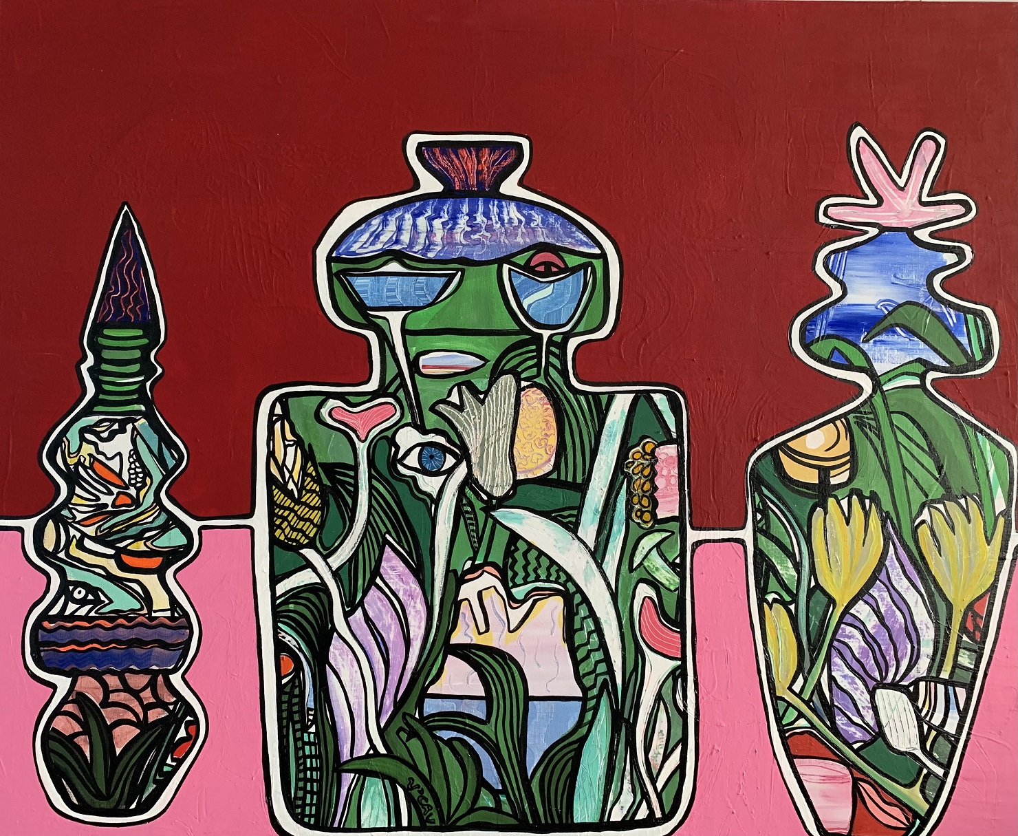 Une nécessité absolue de peindre, une liberté de composition, une spontanéité caractérisent mon travail. Mes œuvres se veulent jubilatoires de par ma palette luxuriante. Je cherche à transmettre mes émotions, le bonheur à travers mon univers radieux et fantaisiste.