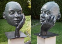 Les sculptures de Véronique, d’une grande expressivité, invitent à la rencontre de l’Homme abordé dans sa diversité. Elles peuplent un univers vivant et singulier dont la découverte interpelle tantôt par la force de certains visages puissants tannés par la vie, attendrit par la douceur de traits savamment esquissés ; saisit l’instant d’après par l’intensité d’un baiser, interroge par une attitude, le mystère d’un geste ou encore l’énigme d’un message caché derrière des yeux clos.