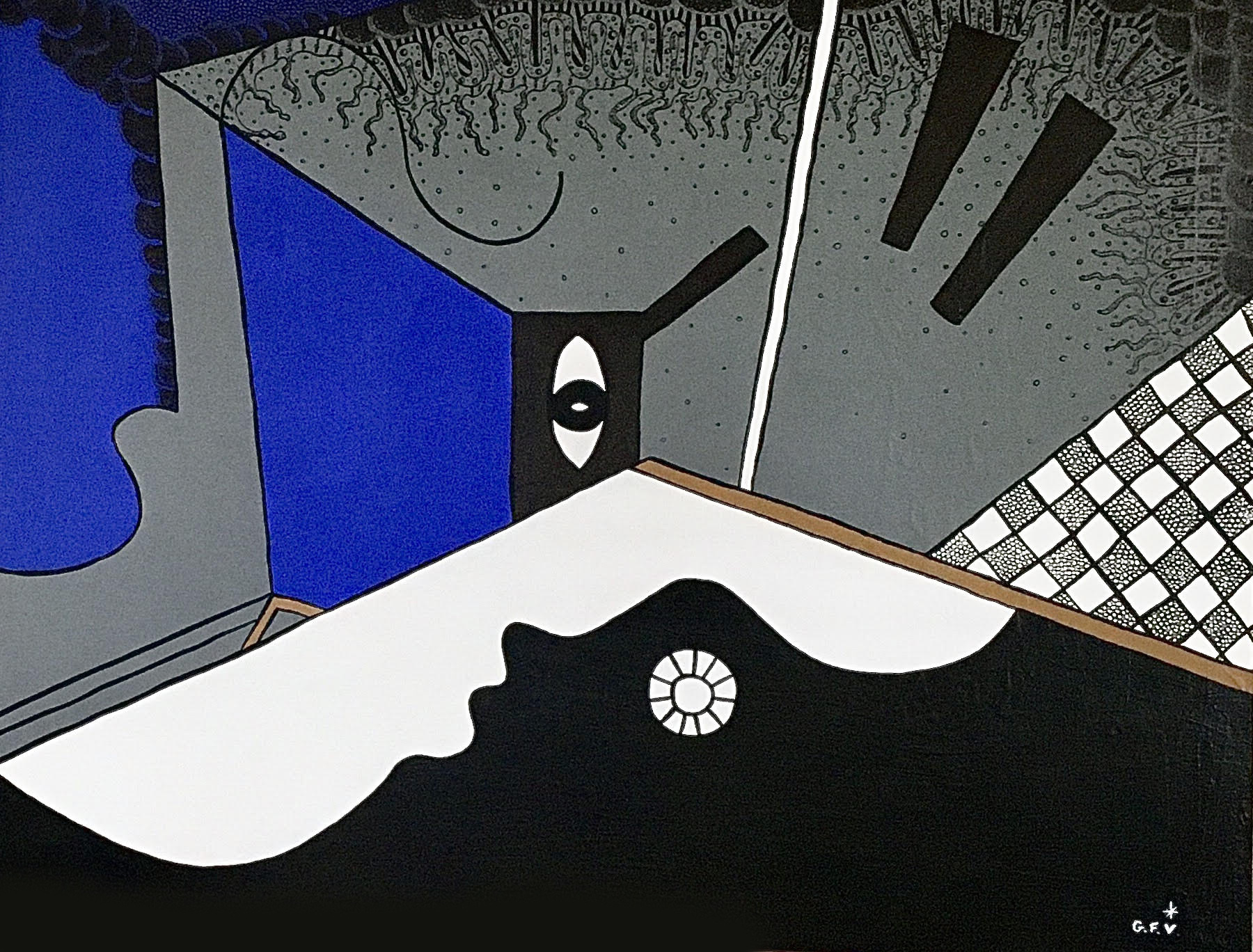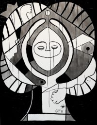 Gwendoline Finaz de Villaine est écrivain, chanteuse et peintre. Sa peinture est une musique mise en papier, influencée par son expérience scénique, le cubisme, le surréalisme et l’art africain.