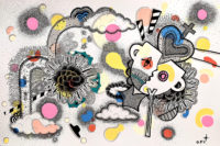 Férue des Années 20, elle aime faire converser son « inconscient à ciel ouvert » avec des totems à l’encre de Chine et des carafes qui dansent. Ses œuvres japonisantes rappellent Man Ray, Akinori Haga, et illustrent le goût de l’artiste pour le mélange entre l’Orient et l’Occident. Passionnée par la magie, les synchronicités et les signes, la peintre poursuit son exploration du travail de détail au stylo encre, et affermit sa technique de dégradés mêlant petits ressorts, cercles et univers minéral, organique, qu’elle nomme « encre caviar ».