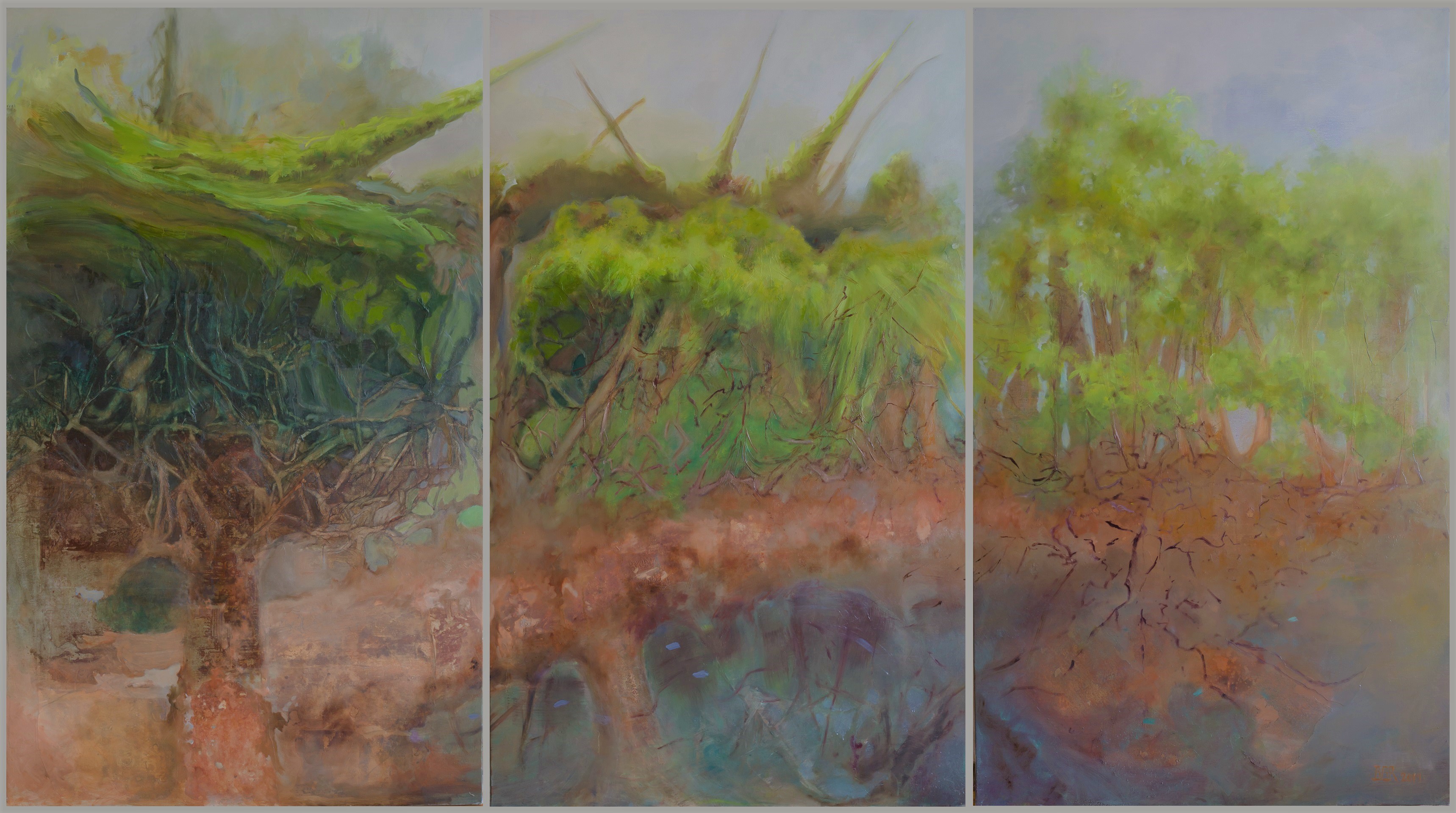 Bénédicte Grange Rogulski a débuté sa formation aux beaux-arts en région parisienne, l’a poursuivie à l’Art Students League of New York durant deux ans, puis dans le cadre de l’atelier de recherche d’Hélène Legrand. Aujourd’hui, elle exerce dans son atelier à Louveciennes (Yvelines) et anime le cours de dessin et de peinture « Corps et Couleurs » à l’Atelier Enfance de l’Art à Saint-Germain-en-Laye. Son statut est celui d’artiste professionnelle enregistrée à la Maison des Artistes. Bénédicte travaille sur la relation de l’homme à la nature.