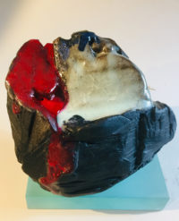 Alors je tente de représenter ce monde, strié de sillons, raviné, crouté, et les pentes enneigées, ou bien les fusions pétrifiées, pour exprimer toutes ces traces laissées par la vie en témoignage. Mes coupes couvertes d’émaux superposés sont appliqués en aveugle au pinceau, ce sont des minéraux qui ne seront révélés par le feu qu’après cuisson à 1300°. Leur surface est là comme un hymne à l’eau, à la fluidité et aux transparences, contrastant avec la matière brute et mate du support.