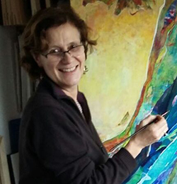 C’est par la couleur qu’elle exprime les mutations de notre monde. Les formes sont à la fois précises et confuses, les lignes sinueuses s’entremêlent, mystère de détails qui disent la complexité du réel. Les images s’affichent au gré de souvenirs involontaires, entre figure et abstraction.