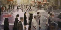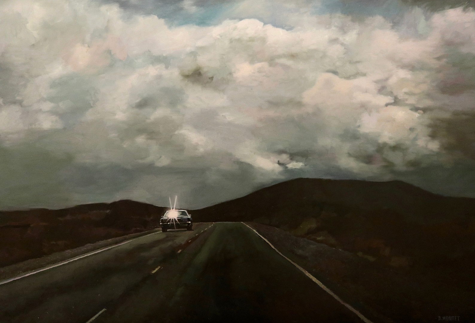 Dans mes peintures, je compose des scénarios où les personnages, les automobiles et les décors nous racontent une histoire.