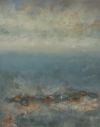 D’un point de vue plastique mon objectif est d’explorer l’aire fluide entre l’abstraction et la figuration. Le flou et le diffus reflètent mes idées et correspondent à ma recherche plastique. Mon travail est une recherche spontanée d’équilibre des formes, des couleurs, des gestes et des signes – je crée un espace complexe fait de superposition de lavis des pigments minéraux, de textures et de collages multiples.
