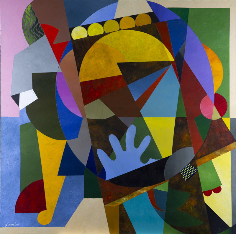 Chez Georges TROUBAT, la composition est savamment étudiée et le dessin y est rigoureux, les formes, souvent géométriques, sans paraître figées ; Sous une apparente liberté, rien n’est jamais laissé au hasard.