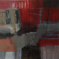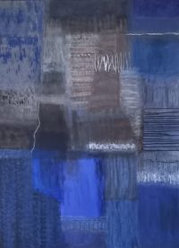 Techniques mixtes (enduits, sables, peinture acrylique, collages), matière, transparence et signes aboutissent à une peinture à la limite de l’abstraction et de la figuration.